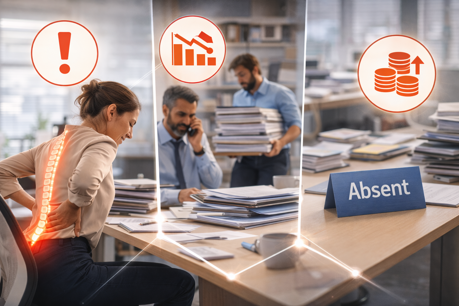 Les troubles musculosquelettiques représentent un enjeu majeur pour les entreprises. L’un des effets les plus visibles est l’absentéisme. Les douleurs musculaires ou articulaires peuvent entraîner des arrêts de travail répétés ou prolongés.